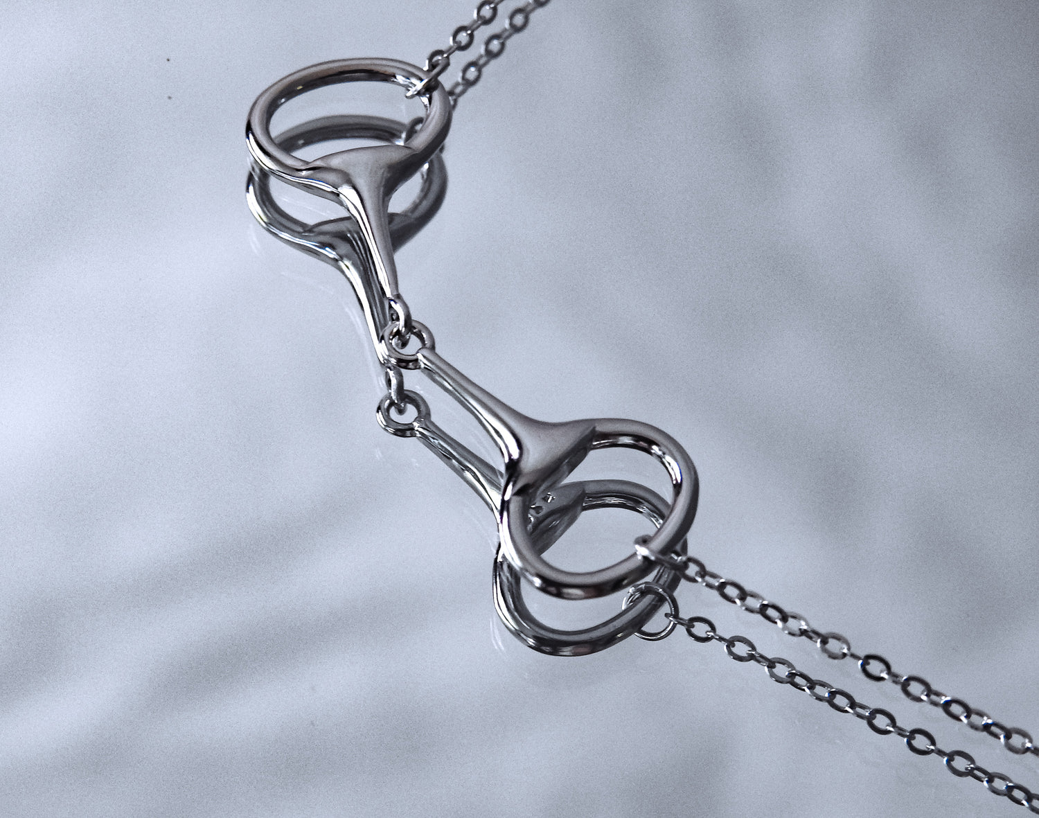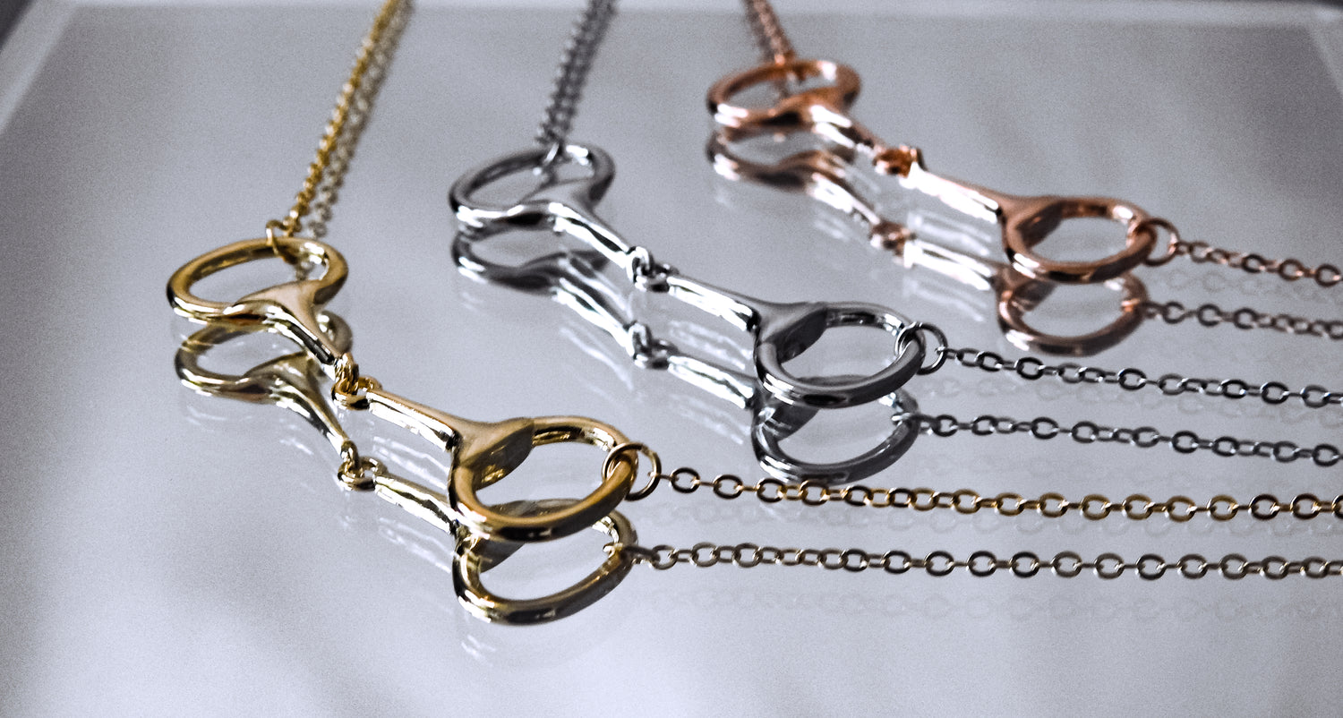 These stunning necklaces are made of top quality sterling silver. They feature a snaffle and are available in three colours, Silver, Rosegold and Gold.